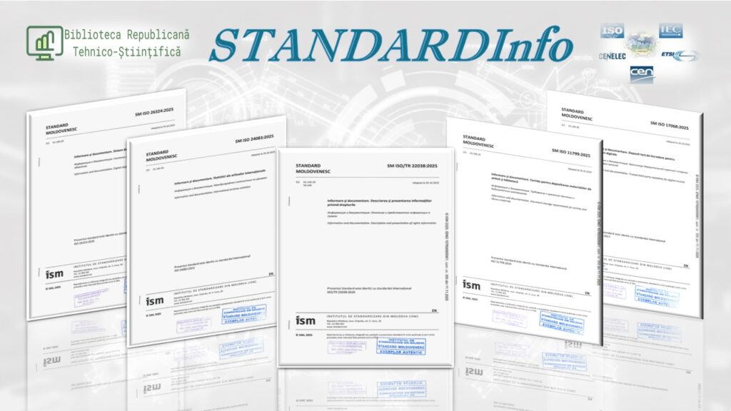 Biblioteca Republicană Tehnico-Științifică (BRTȘ) anunță disponibilitatea unui nou set de standarde internaționale adoptate în 2025, relevante pentru activitatea bibliotecilor, arhivelor, instituțiilor de informare și documentare, precum și pentru profesioniștii implicați în managementul colecțiilor, conservarea patrimoniului și administrarea resurselor digitale. Aceste standarde, adoptate pentru prima dată în Republica Moldova și publicate în limba engleză, oferă cerințe…