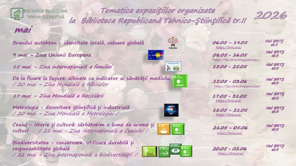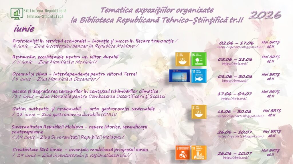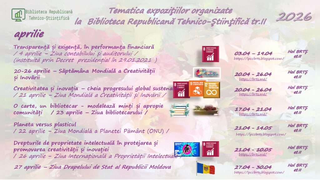 Toate NoutățileBiblioteca Republicană Tehnico-Științifică Vă propune servicii și produse informaționale, atât în mod direct, cât și prin intermediul resurselor online: catalogul electronic, repozitoriul instituțional INCE. De asemenea aveți posibilitatea de a comanda literatura necesară accesând formularul DSI și E-Livrare a Documentelor. Vă propunem să răsfoiți și expozițiile on-line, plasate pe blogul nostru și canalul de youtube fiind surse utile și veridice pentru informare dar și inspirație. Expozițiile de carte și documente tehnice pe suport fizic le puteți consulta în spațiul expozițional al bibliotecii, etajul II, BRTȘ, str. Ion Creangă, 45.